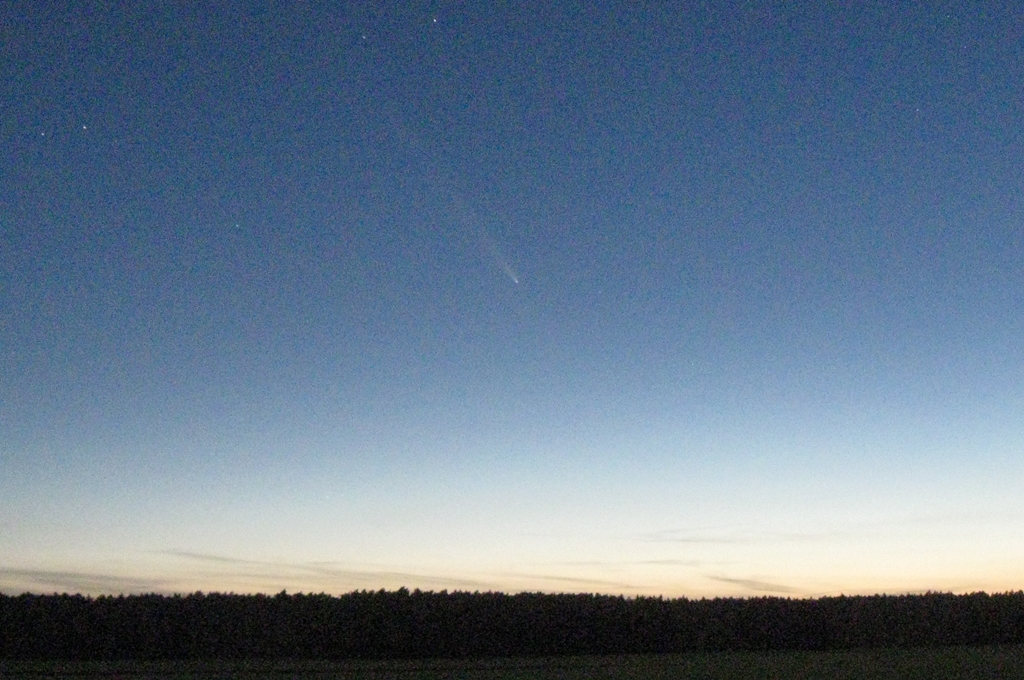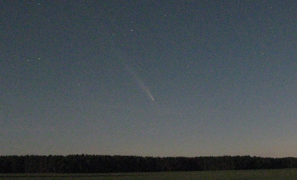 (28. Juli 2025, gegen 03.30 MESZ, links direkt neben dem mittleren Baum könnte Jupiter sein)